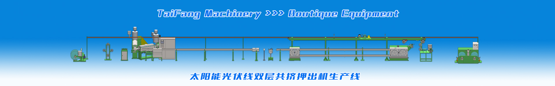 適應于生產(chǎn)太陽能光伏電纜、低煙無鹵料電纜、輻照電纜、XL-PE交聯(lián)聚乙烯電纜,主要有高速絞線機、雙層共擠及串聯(lián)生產(chǎn)線設(shè)備。